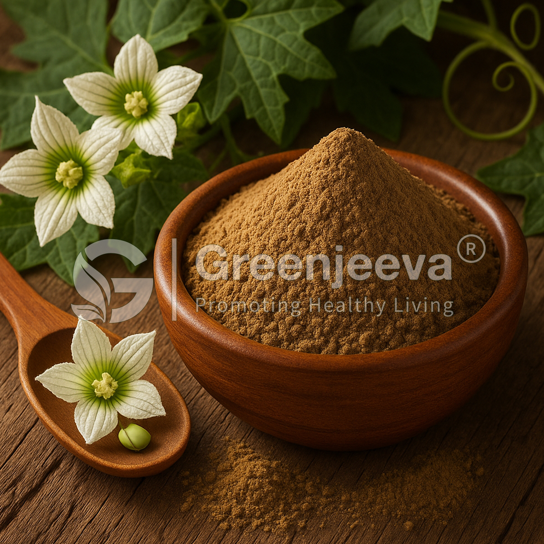 Bryonia laciniosa Flower Extract Powder 4:1 is a concentrated botanical extract derived from the flowers of Bryonia laciniosa, a climbing plant known for its traditional ethnobotanical use. Prepared using a 4:1 extraction ratio, this powder represents the equivalent of 4 parts raw flower material to 1 part final extract, ensuring a potent and standardized profile. The extraction process preserves key phytoconstituents such as flavonoids, alkaloids, and glycosides, which contribute to the extract’s functional characteristics. The extract is analyzed and verified using Thin Layer Chromatography (TLC), ensuring batch-to-batch consistency and phytochemical fingerprinting. It appears as a fine powder, typically brown to dark brown in color, and is suitable for advanced formulations requiring botanical purity and traceability.