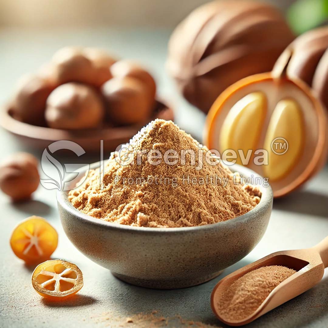 Organic Monk Fruit Extract Powder 10:1 is derived from the fruit of the Siraitia grosvenorii plant, commonly known as monk fruit. The extract is prepared using a 10:1 ratio, meaning ten parts of raw monk fruit are used to produce one part of the concentrated powder. This natural sweetener is known for its intense sweetness, derived from mogrosides, which are compounds in the fruit. It contains zero calories and has a low glycemic index, making it a popular choice for those seeking sugar alternatives in food and beverage products. Organic monk fruit extract powder is often used in beverages, baked goods, and dietary supplements. To maintain its potency and quality, it should be stored in a cool, dry place.