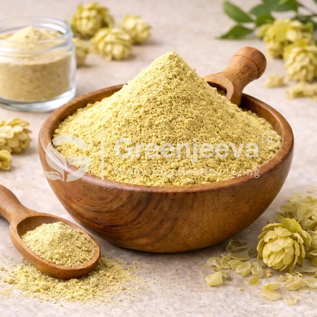 Hops Flower Powder is a fine powder made from the dried flowers (cones) of the Humulus lupulus plant.