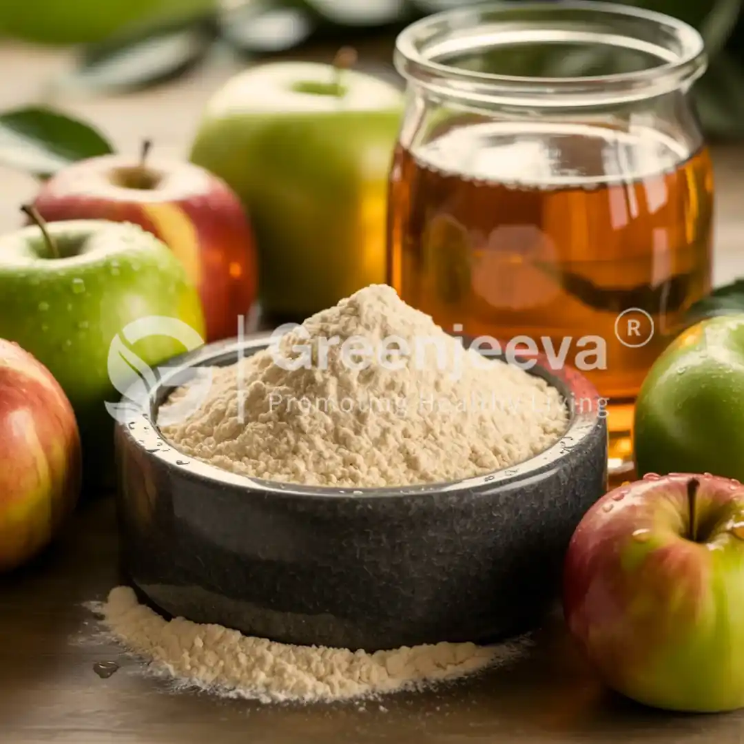 It is made from organically grown apples through fermentation into apple cider vinegar, which is then spray dried into powder.