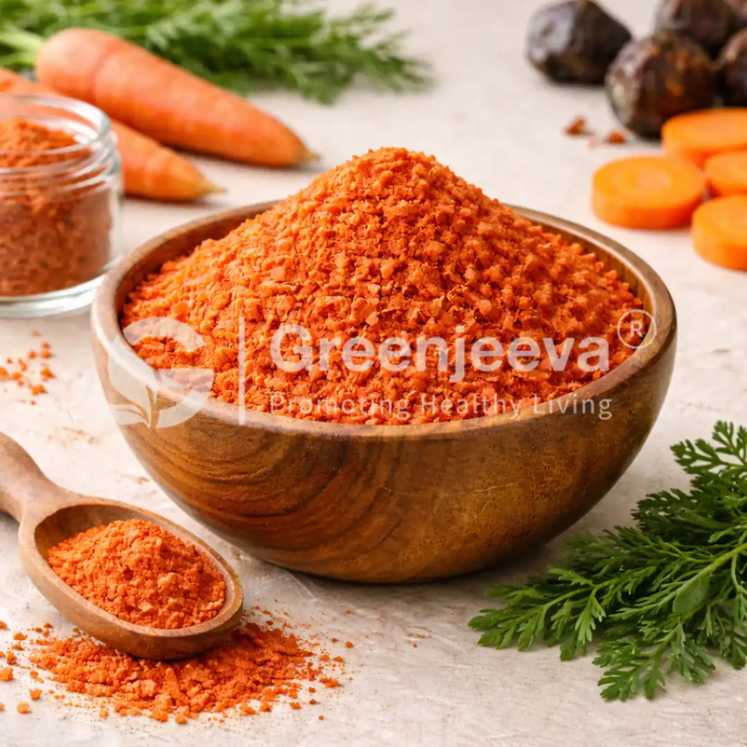 Organic Carrot Granules are made by drying and granulating the roots of Daucus carota under organic processing conditions. They contain naturally occurring constituents such as carotenoids, carbohydrates, and dietary fiber. The granules are used in food formulations, soups, seasonings, ready-to-eat meals, and culinary applications, offering characteristic color, vegetable flavor, and compatibility with various formulations.