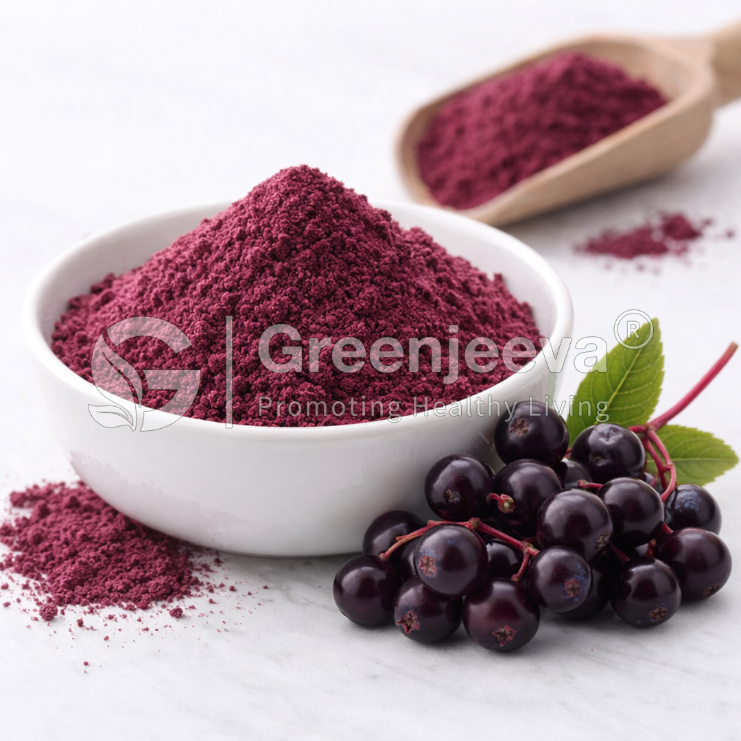 Organic Elderberry Fruit Powder is made by drying and finely grinding ripe elderberries. It contains natural anthocyanins, flavonoids, and pigments that impart a deep purple color and a mildly tart, fruity flavor. The powder is used in beverages, confectionery, dietary supplements, and functional foods for its natural color and rich fruit profile.