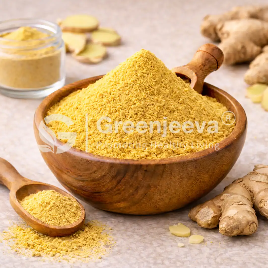 Green Jeeva’s Organic Ginger Extract Powder 10:1 is produced from carefully selected ginger rhizomes (Zingiber officinale) cultivated under certified organic standards. The rhizomes are cleaned, processed through controlled extraction to obtain concentrated botanical compounds, and dried into a fine powder. The 10:1 extract ratio indicates that the powder is derived from a higher quantity of raw ginger, offering a concentrated ingredient suitable for advanced industrial formulations.