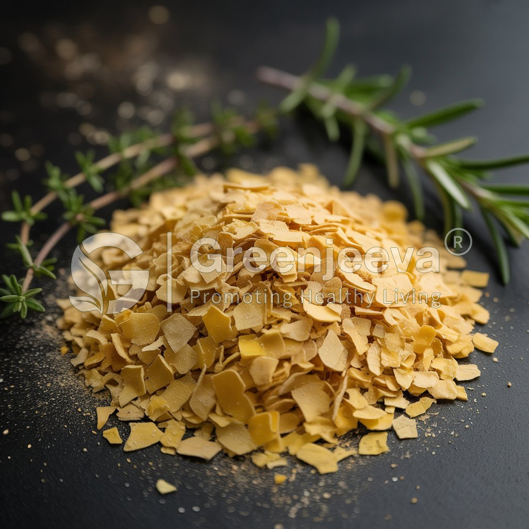 Organic Nutritional Yeast Flakes are inactive yeast flakes made from a naturally fermented strain of Saccharomyces cerevisiae, grown on certified organic plant-based sources such as molasses or beet sugar. Once harvested, the yeast is deactivated with heat, dried, and milled into golden-yellow flakes with a savory, cheese-like flavor.