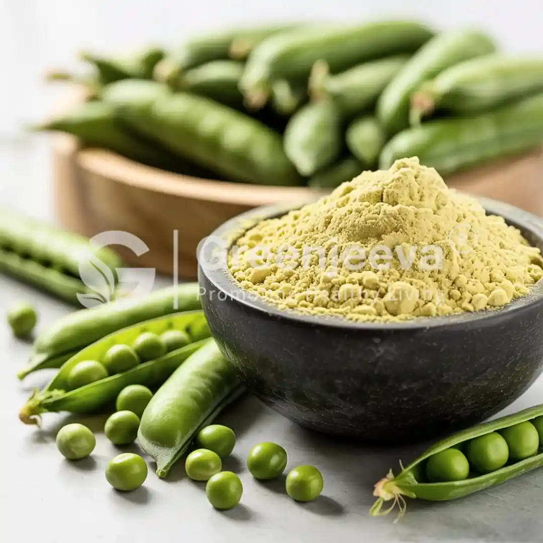 Green Jeeva’s Organic Pea Protein Powder is produced from certified organic Pisum sativum peas, sourced from trusted growers in North America. The peas are carefully cleaned, dehulled, and processed using mechanical methods to isolate a high-protein fraction. This fraction is then finely milled to achieve the desired protein concentration and powder texture suitable for industrial applications.